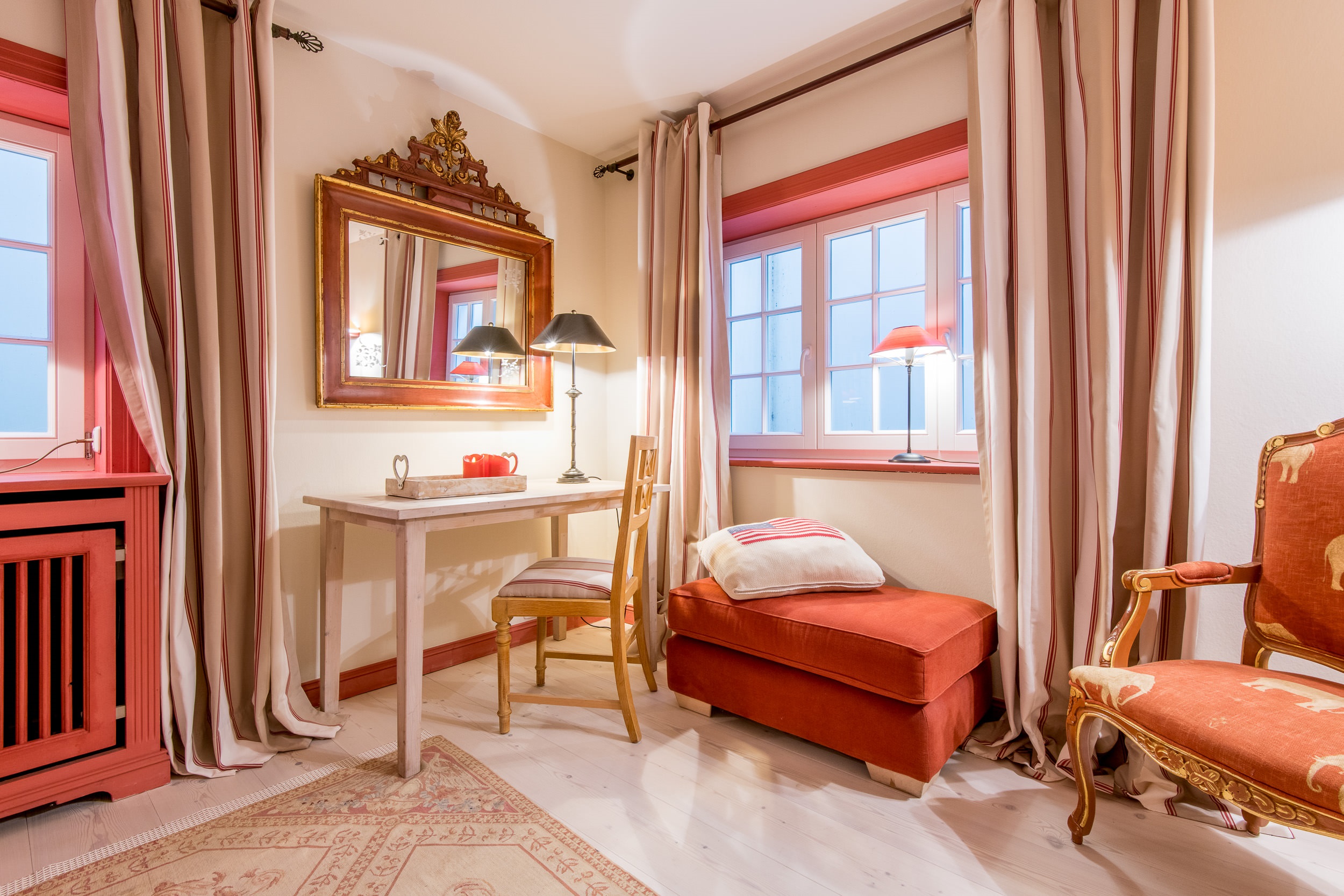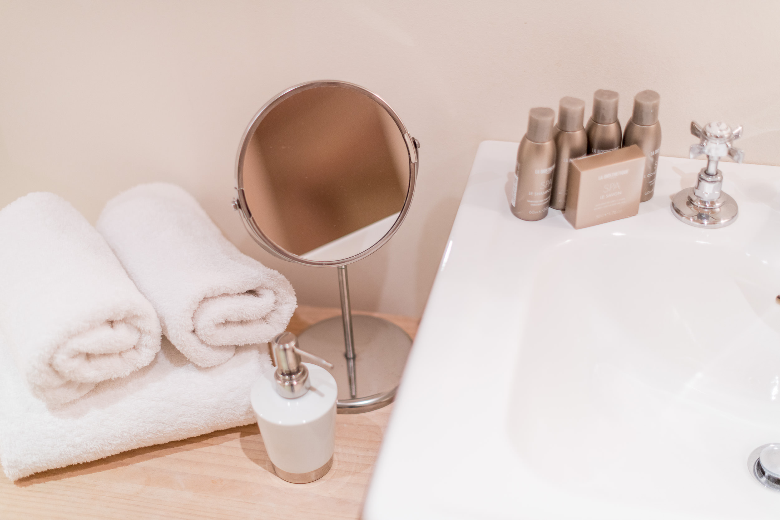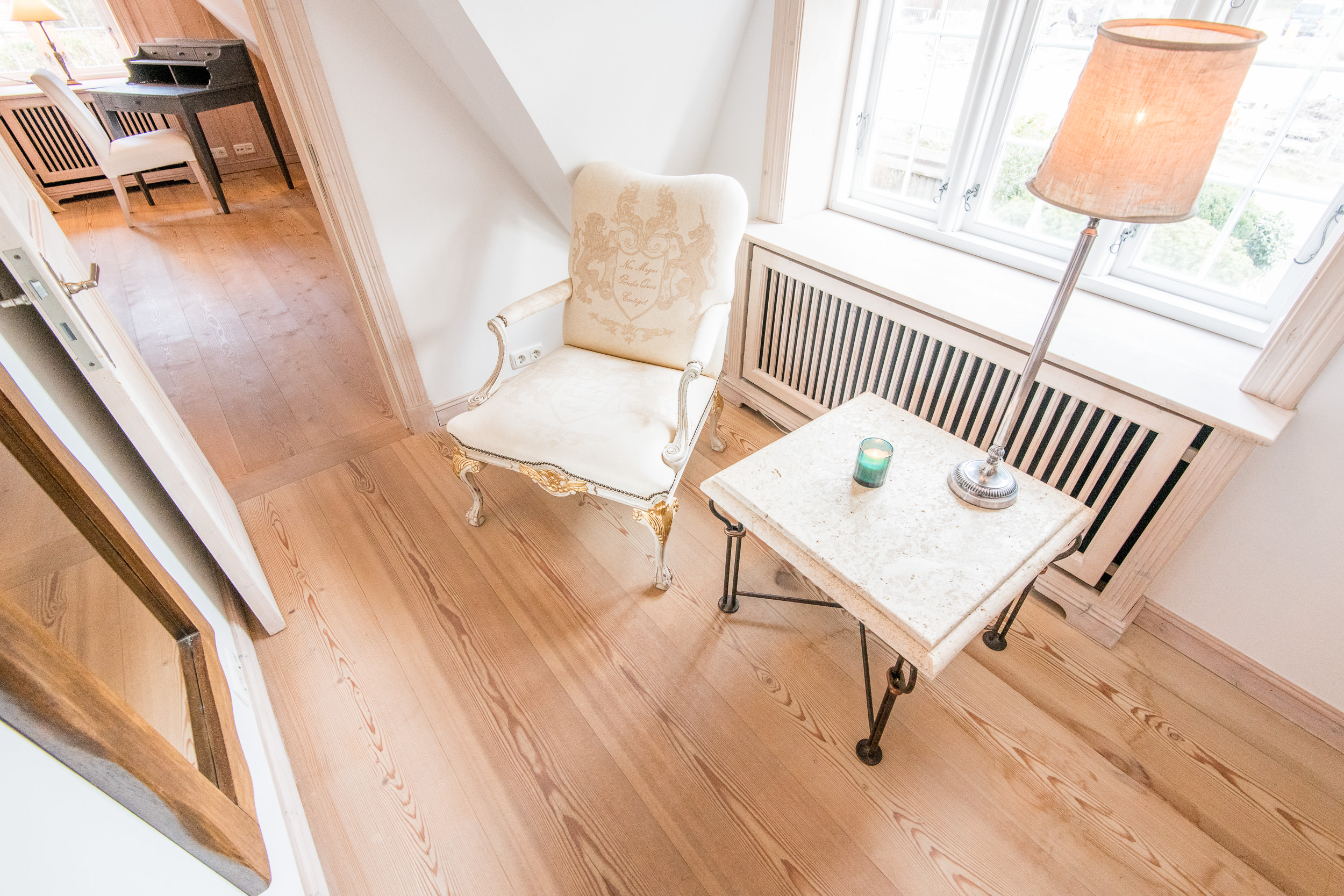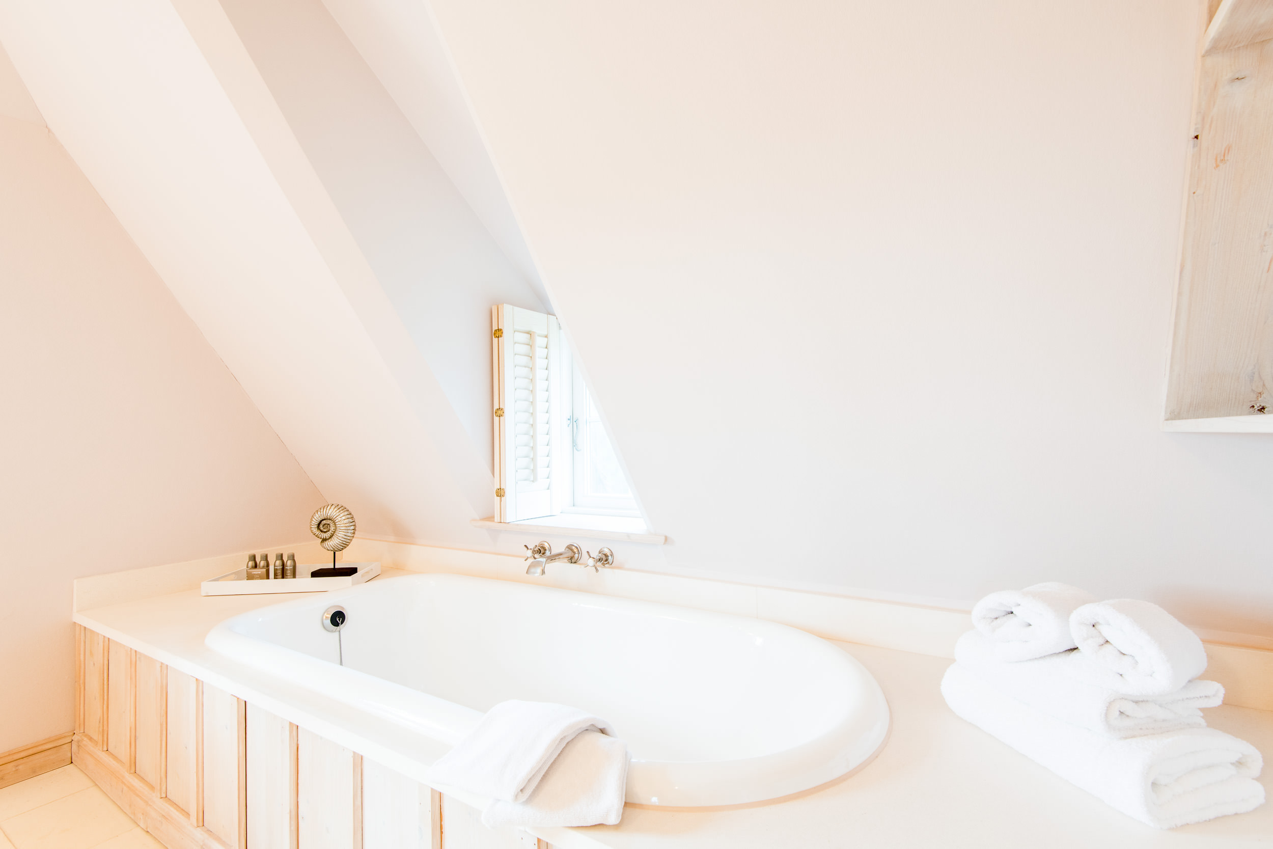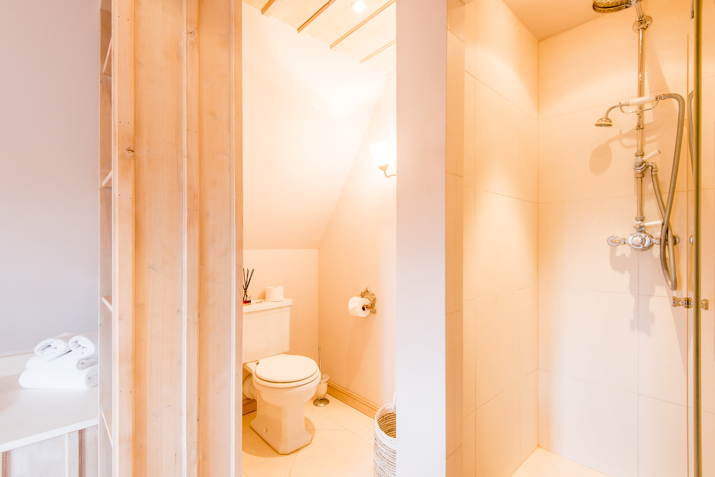 Über eine bequeme Treppe geht es zu den 4 hochwertigen Schlafzimmern, eines davon mit übergroßem King-Size Bett und antikem Schreib-Sekretär im OG mit Blick in den Garten und sehr exklusivem en-Suite Bad mit großer Dusche, 2 Waschbecken, Handtuchheizkörper und großzügiger Wanne mit Blick in den Garten.