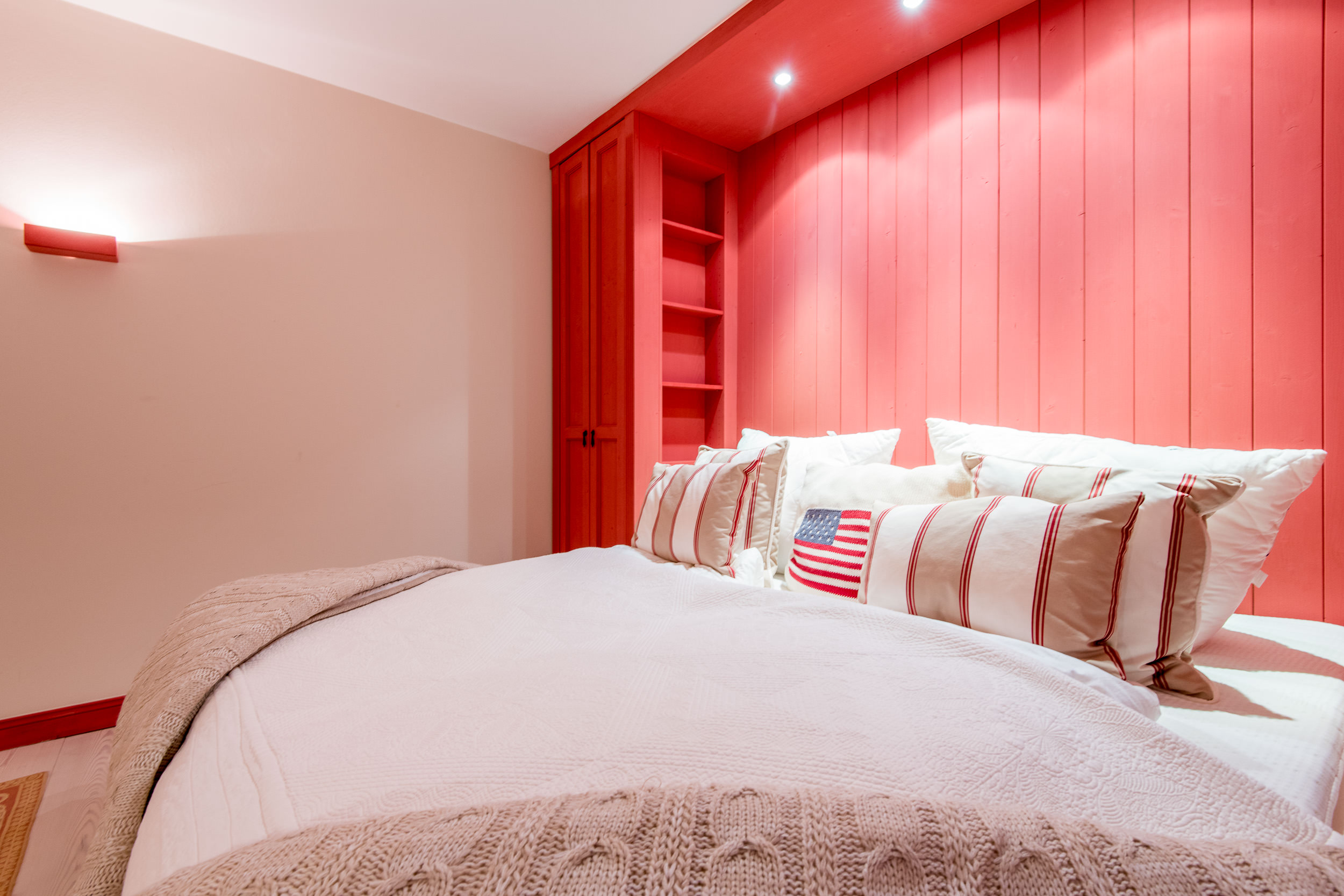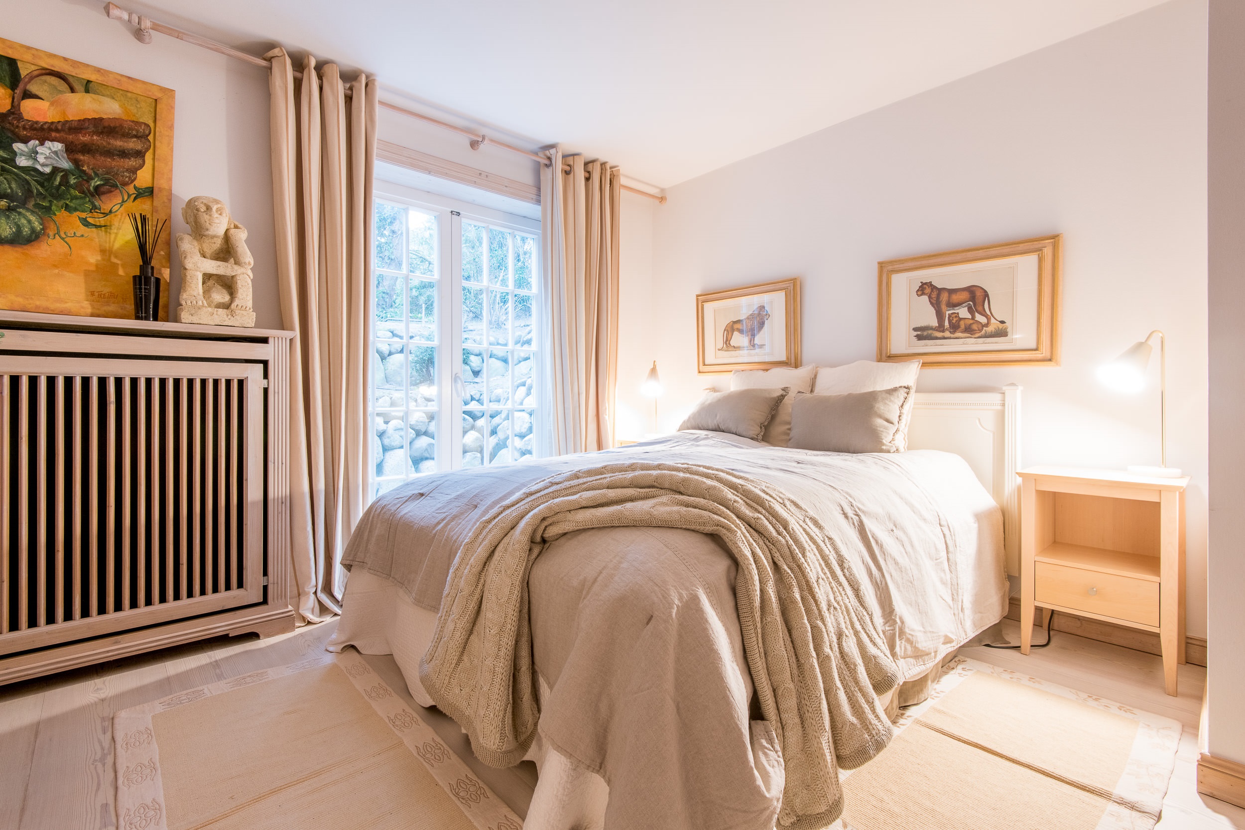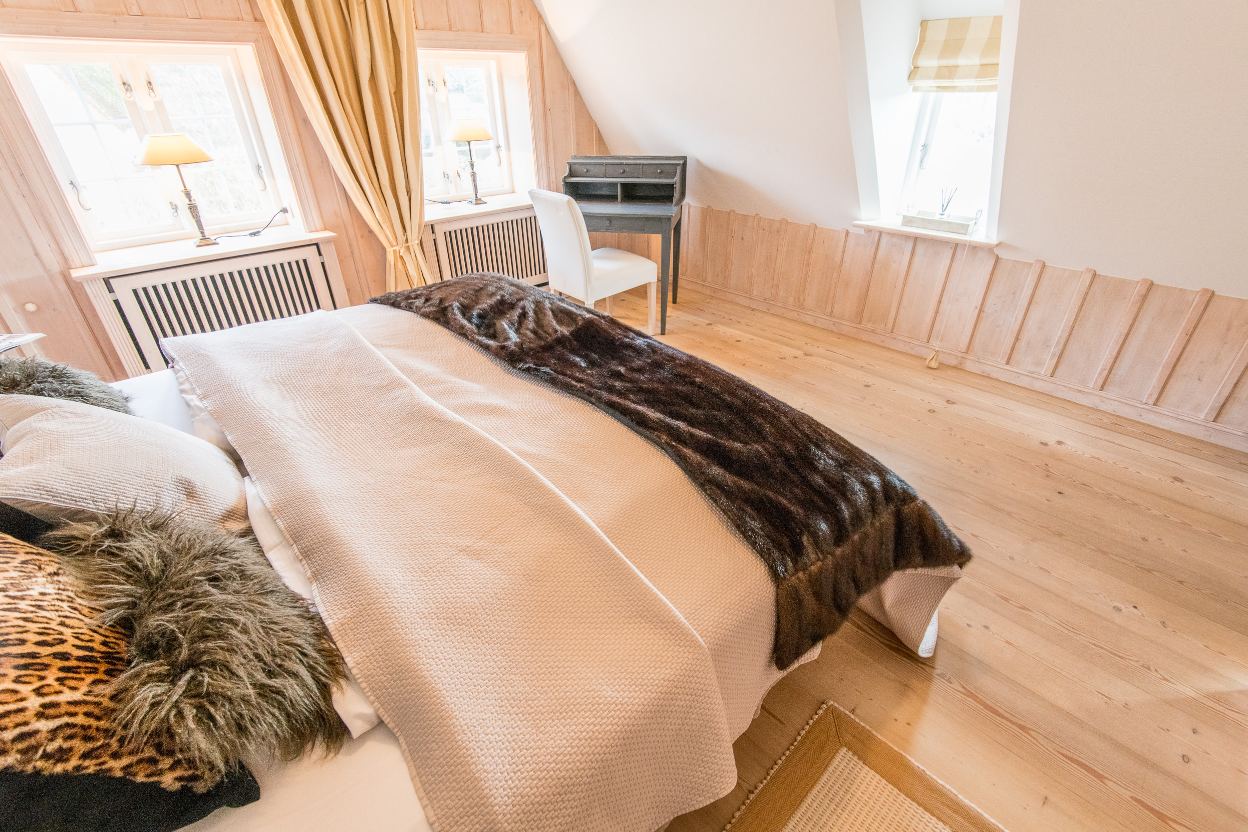Alle 4 Schlafzimmer haben exklusive Betten mit hochwertigen Matratzen und grosse Schränke. 3 Schlafzimmer haben bequeme Schreibtisch-Plätze zum Arbeiten, eines mit eigener sonniger kleiner Terrasse.
