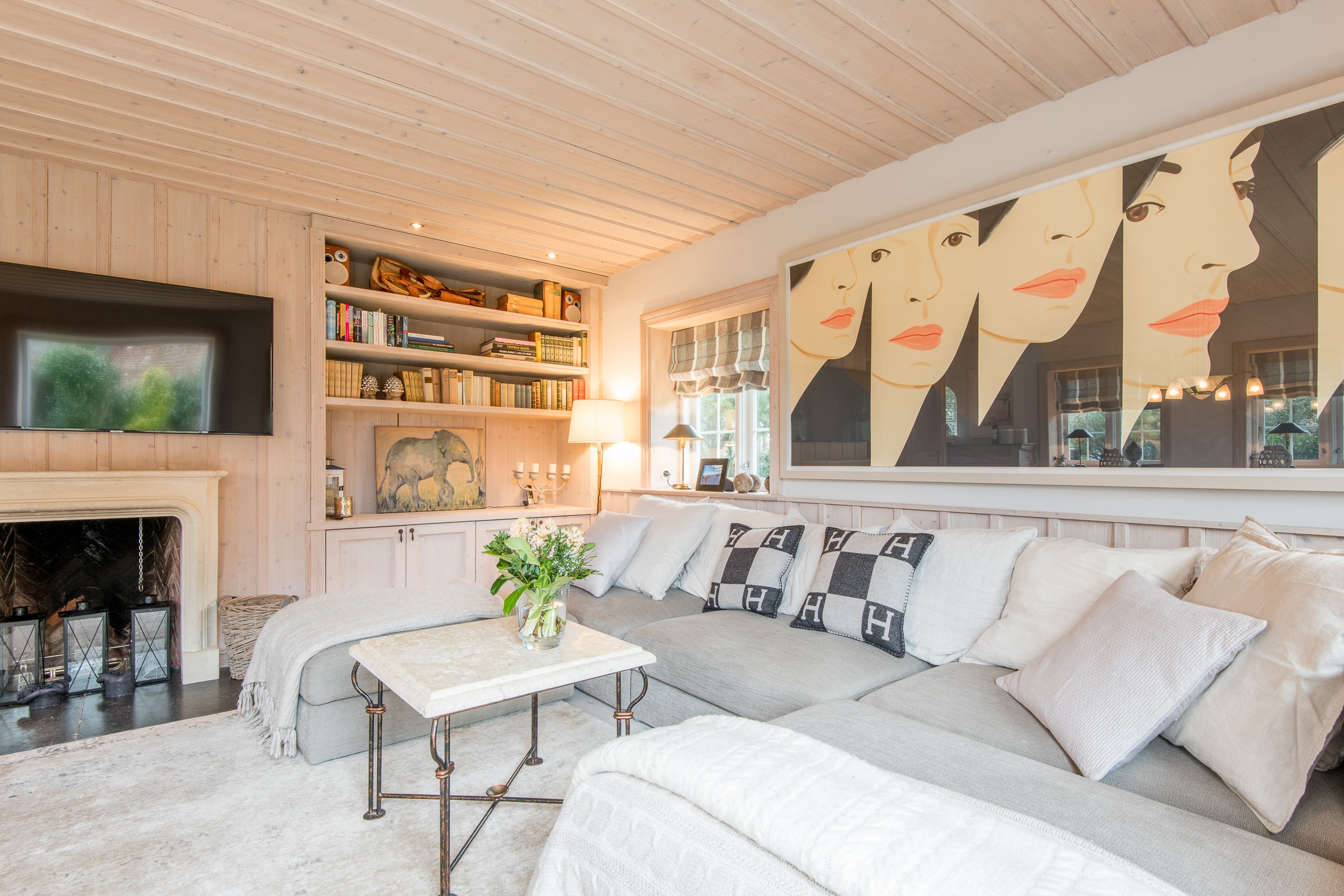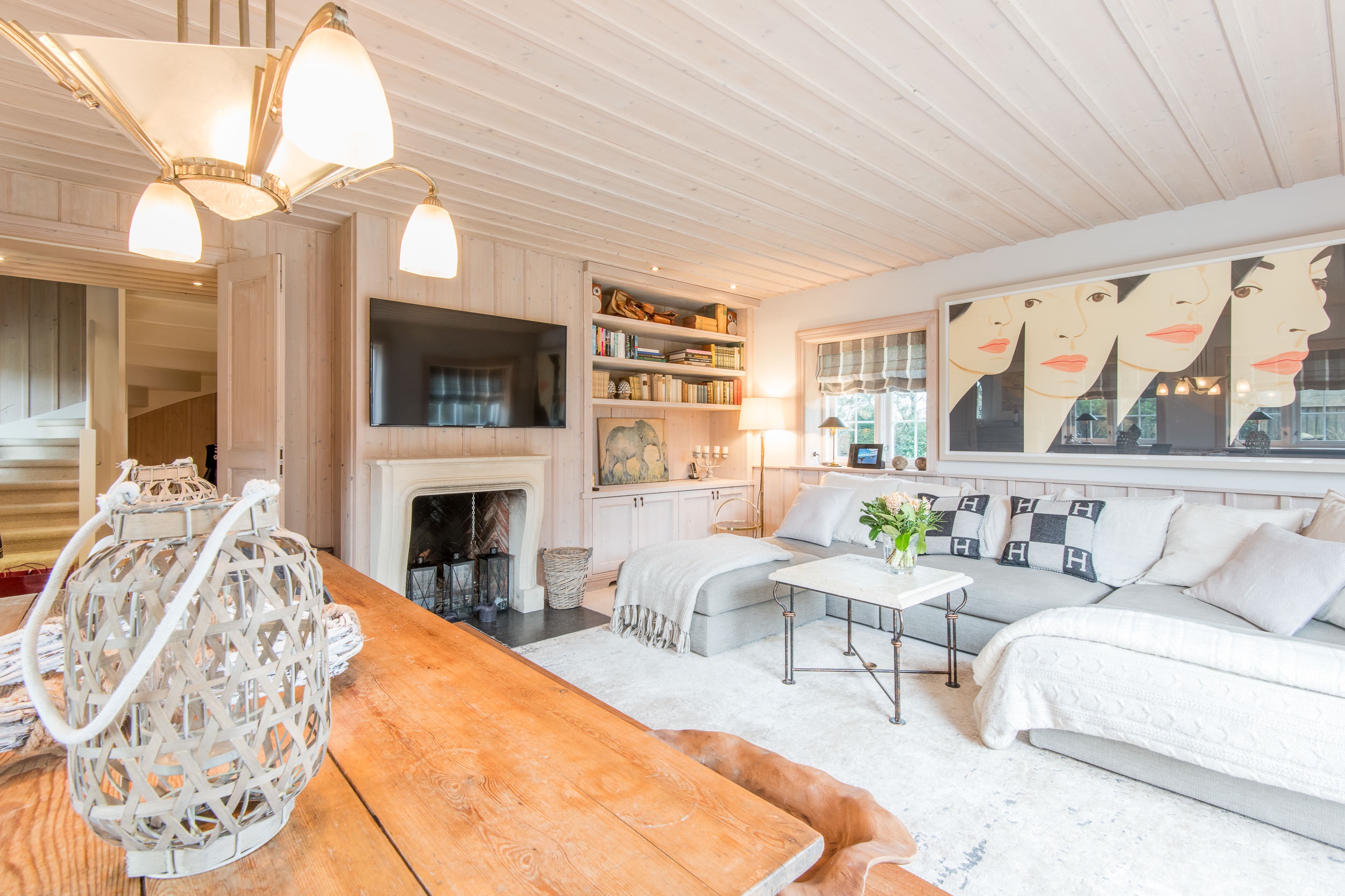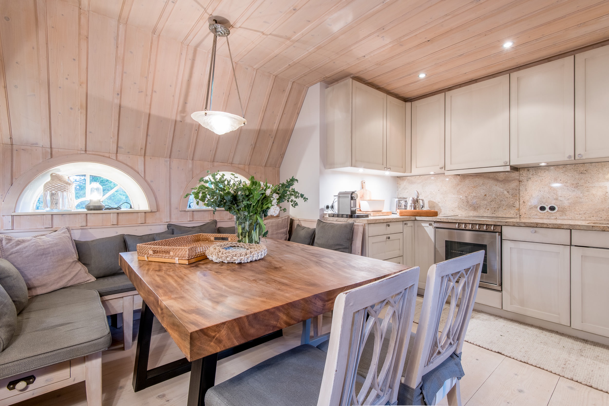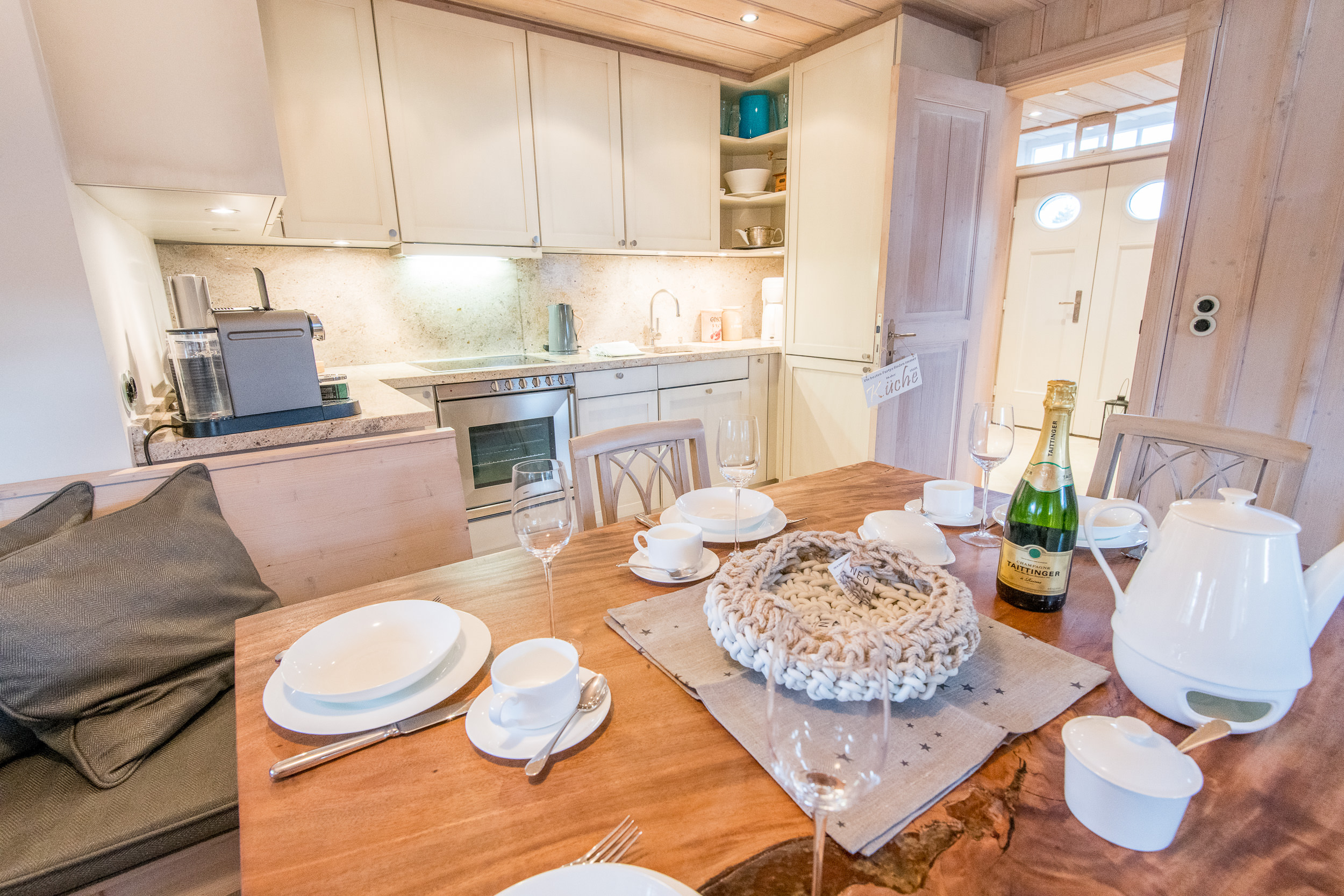 Edles und komfortables Wohnzimmer mit offenem Kamin und davor liegender sonniger Terrasse, eine separate große luxuriöse voll ausgestattetet Wohnküche mit 2. großem Esstisch und Klöntür zur 2. sonnigen Terrasse.